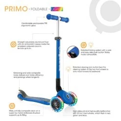 Globber Primo Scooter Foldable Lights With Anodized TBar Navy Blue