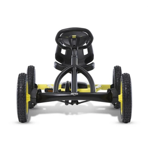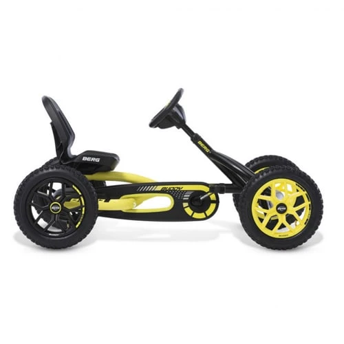 Dare greatly on this duo-tone vibrant yellow masterpiece, you’ll be noticed everywhere. This design has been thoroughly worked over with funky new rims and cool new tyres. The improved ergonomic bucket seat assures ultimate comfort, and extra grip on the steering means absolute driving control. The Buddy Cross elevates your experience with the BERG soundbox and off-road tyres allows you to tackle any terrain. Choose your own adventure!
