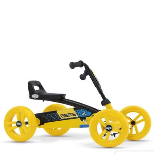 Can you imagine your child whizzing through the neighbourhood on this yellow BSX sensation. This cool Buzzy BSX is much sturdier than a three-wheeler. Your feet remain firmly on the pedals even going round the tightest corners. Forwards, backwards, stopping within a few seconds, it can all be done with this BERG Buzzy. The pedals remain within reach at all times and the four wheels make the go-kart super stable.