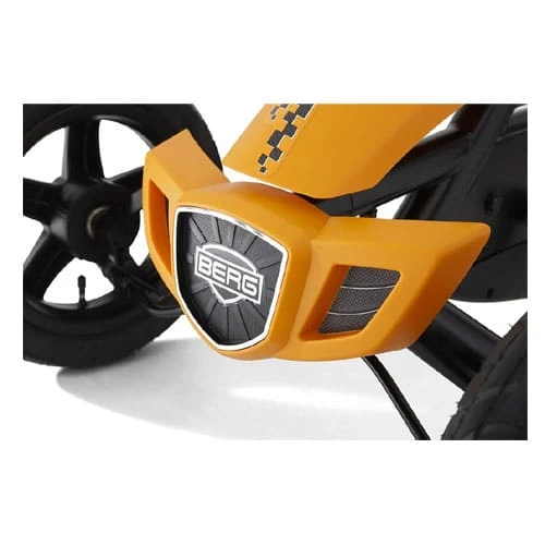 The BERG Rally Orange is a light and compact go-kart you can play with anywhere outdoors. Explore your neighborhood or organise a race – it’s all possible with this go-kart. What’s unique and safe about this go-kart is the BFR system, letting you brake with the pedals, and when you have come to a halt, you can immediately pedal backward. Because the seat and steering wheel are both adjustable, the BERG Rally Orange is suitable for children aged 4 to 12. You can make playing outside even more fun with the BERG Junior Trailer.
