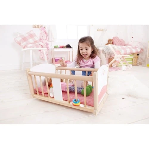This beautifully crafted Hape cradle is ideal for use with a range of other dramatic play resources such as dolls and puppets. Encourage imaginative play, social skills, language development and more. Made of wood and fabric. Doll not included.