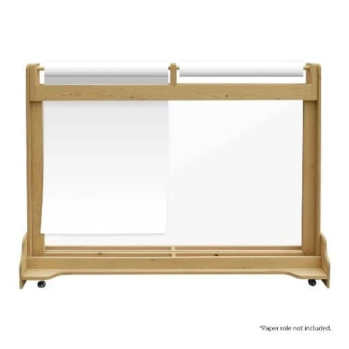 The Creativ Drawing Board is the all-in-one easel every budding artist needs. A Perspex drawing screen is the canvas for water based paints and whiteboard markers, or the easel to lean paper roll against for drawing and painting. Wooden storage trays hold all your little painter’s brushes and accessories.