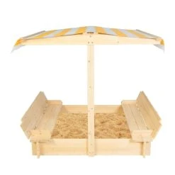 This sandpit comes with a nifty UV-protected canopy to keep your kids cool and in the shade during play.