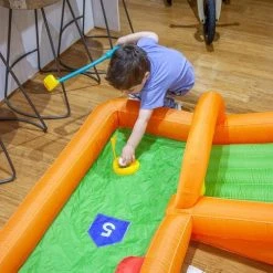 Aim for a hole in one with our Tee Off Inflatable Mini Golf Play Centre. With easy set up and pack down in a minute – you’ll have the ultimate mini golf playground for up to two kids at once! With two levels to play on, and a variety of challenges – this is a great addition to any parties, events, or holiday fun!