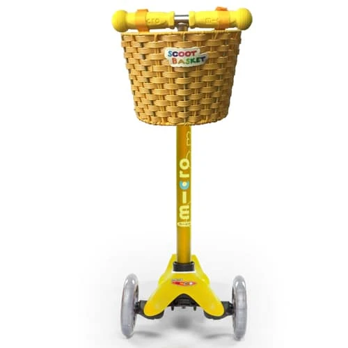 Kids love carrying their own things when they scoot. What better way than a cute yet durable basket that attaches to most Micro Scooters. The basket is extremely durable as it has a strong frame and is hand-woven with waterproof material. It is super easy to attach and detach and hold all kids things from drink bottles, snacks and even little teddy bear companions. The basket attaches to the aluminium part of the handle around the grips – two strong velcro fastening straps leaving plenty of room for small hands. This provides a secure fit which means the basket won’t fall off or slip down the scooter.