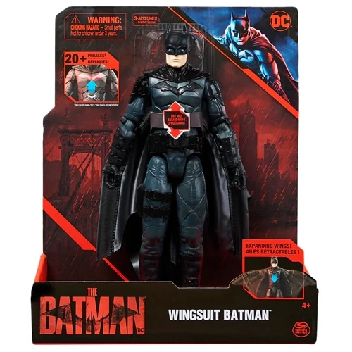 Create your own epic Batman adventures with the Batman 12-inch Action Figures! The Wingsuit Batman figure features 11 points of articulation, wingsuit with expanding wings, and detailed movie styling that brings your favorite Batman figures to life! Press on the Batman’s belt to lift wings up. Glide over Gotham City and be on the lookout for Super-Villains like The Penguin. Light up the Batman symbol on the suit and activate over 20 sounds and phrases! DC fans of all ages love Batman action figures. Engage your imagination and create your own epic Batman battles! With a range of figures to collect from the Batman Movie, you can now expand your Batman action figure collection with Batman, Selina Kyle, The Penguin, and more (each sold separately). Collect your favorite Super Hero and Super-Villains from the Batman Movie. Team up Batman to take The Penguin down! Bring your favorite Batman movie moments to life with the Batman 12-inch Action Figures and protect Gotham City!