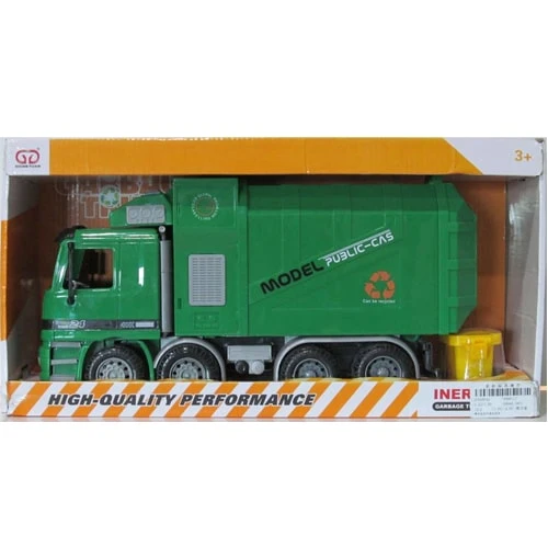 Friction powered Garbage truck will keep the kids playing all day. Attach the bin to the side loader – open the top – slide your bin up and drop your rubbish into the truck.