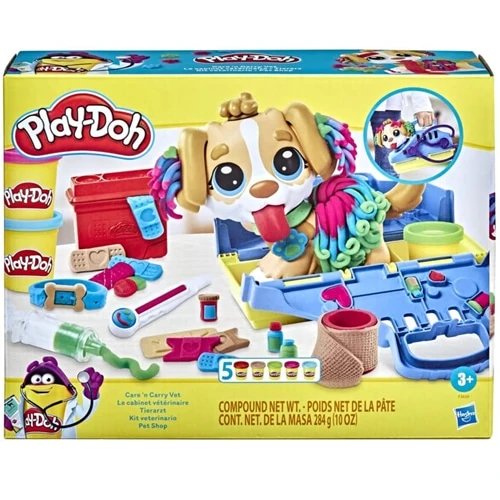 It’s time for this pup’s checkup! With so many ways to get creative and play pretend veterinarian, this vet toy for kids 3 years and up is sure to win the hearts of caring little animal lovers everywhere. Groom and style the toy dog by growing Play-Doh hair, giving it a haircut, and taking Play-Doh fleas off with tweezers. Start the checkup by making the pup grow a long Play-Doh tongue and using the 10 vet kit tools including a toy stethoscope, thermometer, and more. With 5 classic modelling compound colours, this ready-to-play animal doctor kit makes a great activity, birthday gift, or present for any occasion! Hasbro, Play-Doh, and all related properties are trademarks of Hasbro.