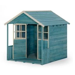 The Deckhouse playhouse has a unique teal or pink colour pop look with a whitewash trim finish so it’ll look perfect in any garden landscape!