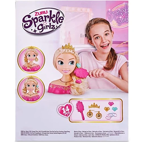ZURU Sparkle Girlz princess hair styling head includes a beautiful princess styling head for you to play with her beautiful soft hair. You can brush her hair with her majestic brush and decorate with colorful hair highlight accessories. So many styles to make and create!